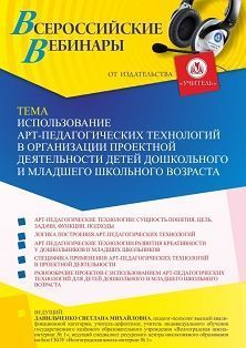 Вебинар Использование арт-педагогических технологий в организации проектной деятельности детей дошкольного и младшего школьного возраста
