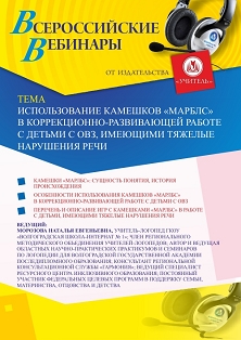 Вебинар Использование камешков “Марблс” в коррекционно-развивающей работе с детьми с ОВЗ, имеющими тяжелые нарушения речи