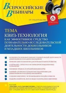 Вебинар КВИЗ-технология как эффективное средство познавательно-исследовательской деятельности дошкольников и младших школьников