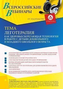 Вебинар Леготерапия как здоровьесберегающая технология в работе с детьми дошкольного и младшего школьного возраста