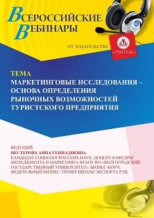 Вебинар Маркетинговые исследования – основа определения рыночных возможностей туристского предприятия
