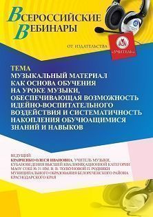Вебинар Музыкальный материал как основа обучения на уроке музыки, обеспечивающая возможность идейно-воспитательного воздействия и систематичность накопления обучающимися знаний и навыков