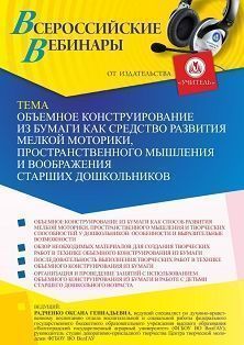 Вебинар Объемное конструирование из бумаги как средство развития мелкой моторики, пространственного мышления и воображения старших дошкольников
