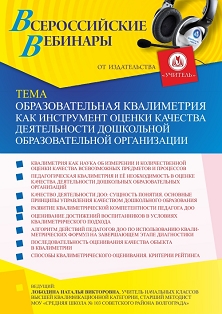 Вебинар Образовательная квалиметрия как инструмент оценки качества деятельности дошкольной образовательной организации