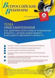 Вебинар Оригамитерапия как здоровьесберегающая технология в работе с детьми дошкольного и младшего школьного возраста
