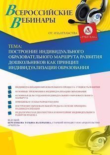 Вебинар "Построение индивидуального образовательного маршрута развития дошкольников как принцип индивидуализации образования"
