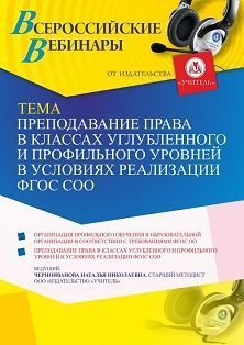 Вебинар Преподавание права в классах углубленного и профильного уровней в условиях реализации ФГОС СОО