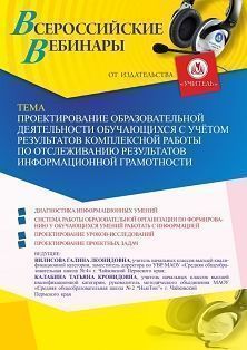 Вебинар Проектирование образовательной деятельности обучающихся с учётом результатов комплексной работы по отслеживанию результатов информационной грамотности