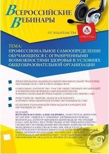 Вебинар "Профессиональное самоопределение обучающихся с ограниченными возможностями здоровья в условиях общеобразовательной организации"