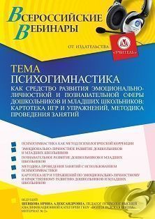 Вебинар Психогимнастика как средство развития эмоционально-личностной и познавательной сферы дошкольников и младших школьников: картотека игр и упражнений, методика проведения занятий