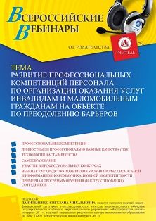 Вебинар Развитие профессиональных компетенций персонала по организации оказания услуг инвалидам и маломобильным гражданам на объекте по преодолению барьеров