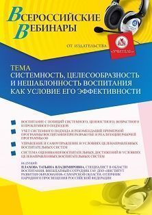 Вебинар Системность, целесообразность и нешаблонность воспитания как условие его эффективности