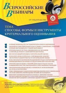 Курс Вебинар Способы, формы и инструменты критериального оценивания | Маркетплейс онлайн образования Edwica