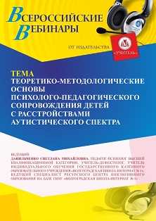 Вебинар Теоретико-методологические основы психолого-педагогического сопровождения детей с расстройствами аутистического спектра