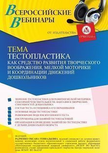 Вебинар Тестопластика как средство развития творческого воображения, мелкой моторики и координации движений дошкольников