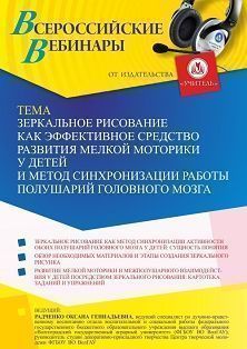 Вебинар Зеркальное рисование как эффективное средство развития мелкой моторики у детей и метод синхронизации работы полушарий головного мозга