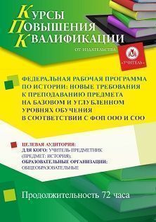 Федеральная рабочая программа по истории: новые требования к преподаванию предмета на базовом и углубленном уровнях обучения в соответствии с ФОП ООО и СОО (72 ч.)