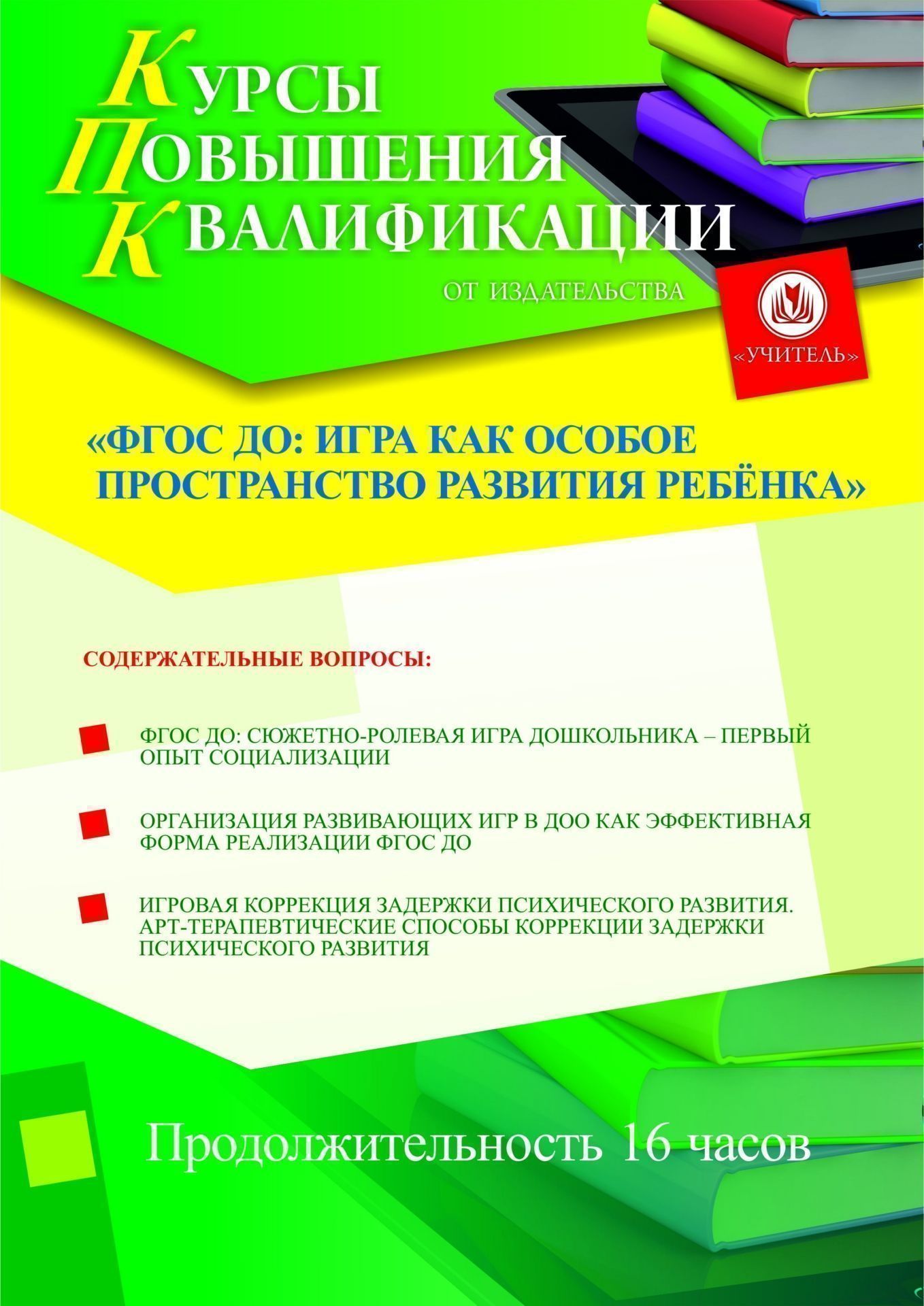 ФГОС ДО: игра как особое пространство развития ребёнка (16 ч.)