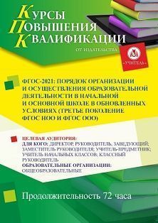 ФГОС–2021: порядок организации и осуществления образовательной деятельности в начальной и основной школе в обновленных условиях (третье поколение ФГОС НОО и ФГОС ООО) (72 ч.)
