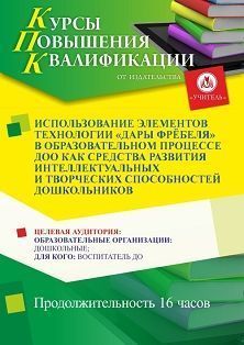 Использование элементов технологии Дары Фрёбеля в образовательном процессе ДОО как средства развития интеллектуальных и творческих способностей дошкольников (16 ч.)