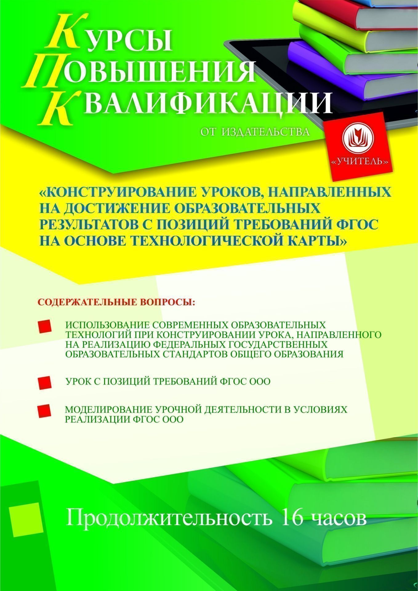 Конструирование уроков, направленных на достижение образовательных результатов с позиций требований ФГОС на основе технологической карты (16 ч.)