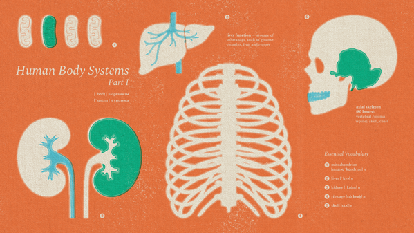 Концепцией данного курса является путешествие по медицинскому университету. В ходе его изучения слушатели познакомятся с лексикой, необходимой для более углубленного ориентирования в медицинской терминологии, связанной со строением человеческого тела. Во втором из пяти шагов слушатели освоят английский язык, который связан с такими областями медицины, как гистология и анатомия человека, подробно познакомятся с некоторыми системами человеческого организма.