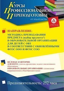 Методика преподавания предмета (выбор предмета*) в образовательной организации для детей с ОВЗ в соответствии с обновлёнными ФГОС НОО, ФГОС ООО и ФГОС СОО (252 ч.)