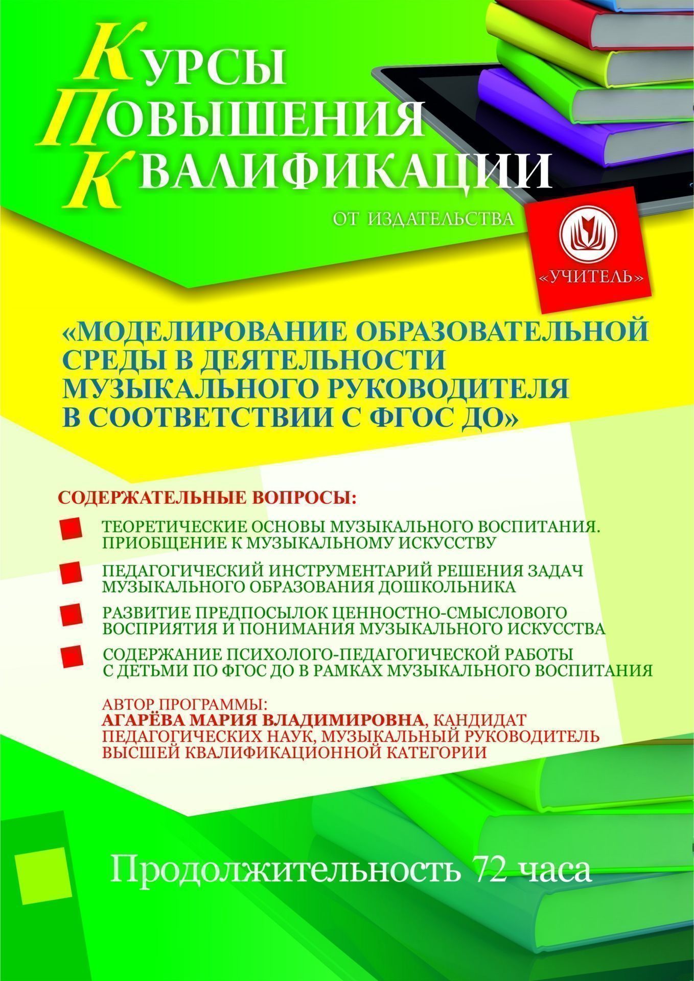 Моделирование образовательной среды в деятельности музыкального руководителя в соответствии с ФГОС ДО (72 ч.)