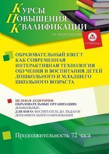 Образовательный квест как современная интерактивная технология обучения и воспитания детей дошкольного и младшего школьного возраста (72 ч.)
