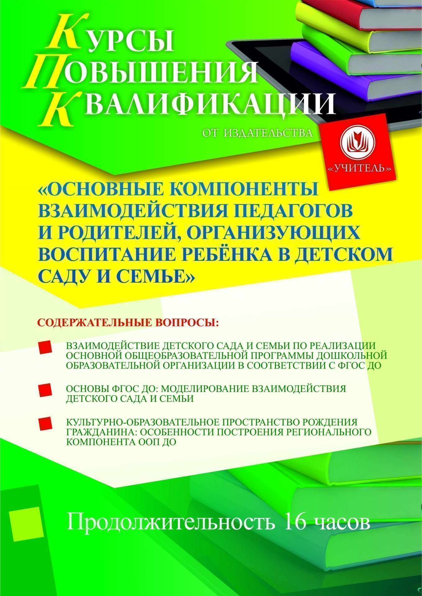 Курс Основные компоненты взаимодействия педагогов и родителей, организующих воспитание ребёнка в детском саду и семье (16 ч.) | Маркетплейс онлайн образования Edwica