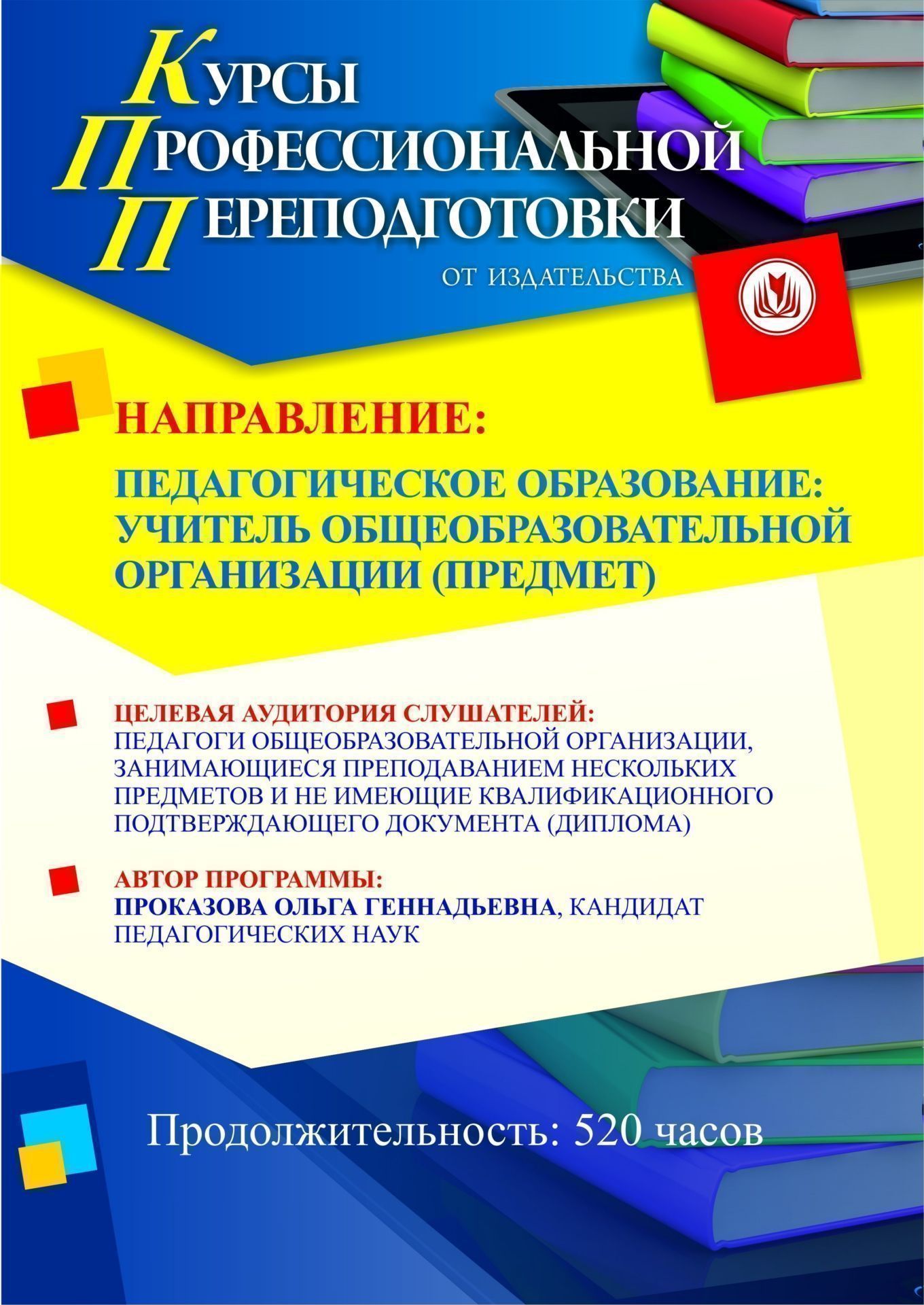 Педагогическое образование: учитель общеобразовательной организации (предмет) (520 ч.)