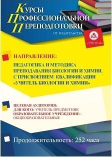 Педагогика и методика преподавания биологии и химии. Присваивается квалификация Учитель биологии и химии (252 ч.)