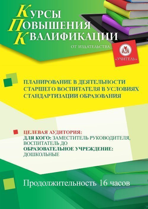 Курс Планирование в деятельности старшего воспитателя в условиях стандартизации образования (16 ч.) | Маркетплейс онлайн образования Edwica