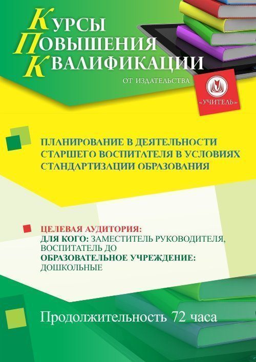 Курс Планирование в деятельности старшего воспитателя в условиях стандартизации образования (72 ч.) | Маркетплейс онлайн образования Edwica