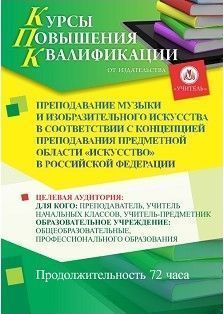 Преподавание музыки и изобразительного искусства в соответствии с Концепцией преподавания предметной области Искусство в Российской Федерации (72 ч.)