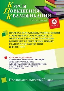 Профессиональные компетенции современного руководителя образовательной организации в контексте внедрения новых стандартов ФГОС НОО и ФГОС ООО (72 ч.)