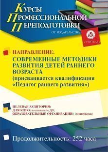 Современные методики развития детей раннего возраста. Присваивается квалификация Педагог раннего развития (252 ч.)