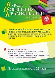Современный логопедический пункт общеобразовательной организации: документация, планирование, организация, содержание и методы коррекционной работы (72 ч.)