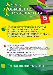 Создание условий для развития и поддержки добровольчества (волонтерства) в условиях реализации Федерального проекта Социальная активность (72 ч.)
