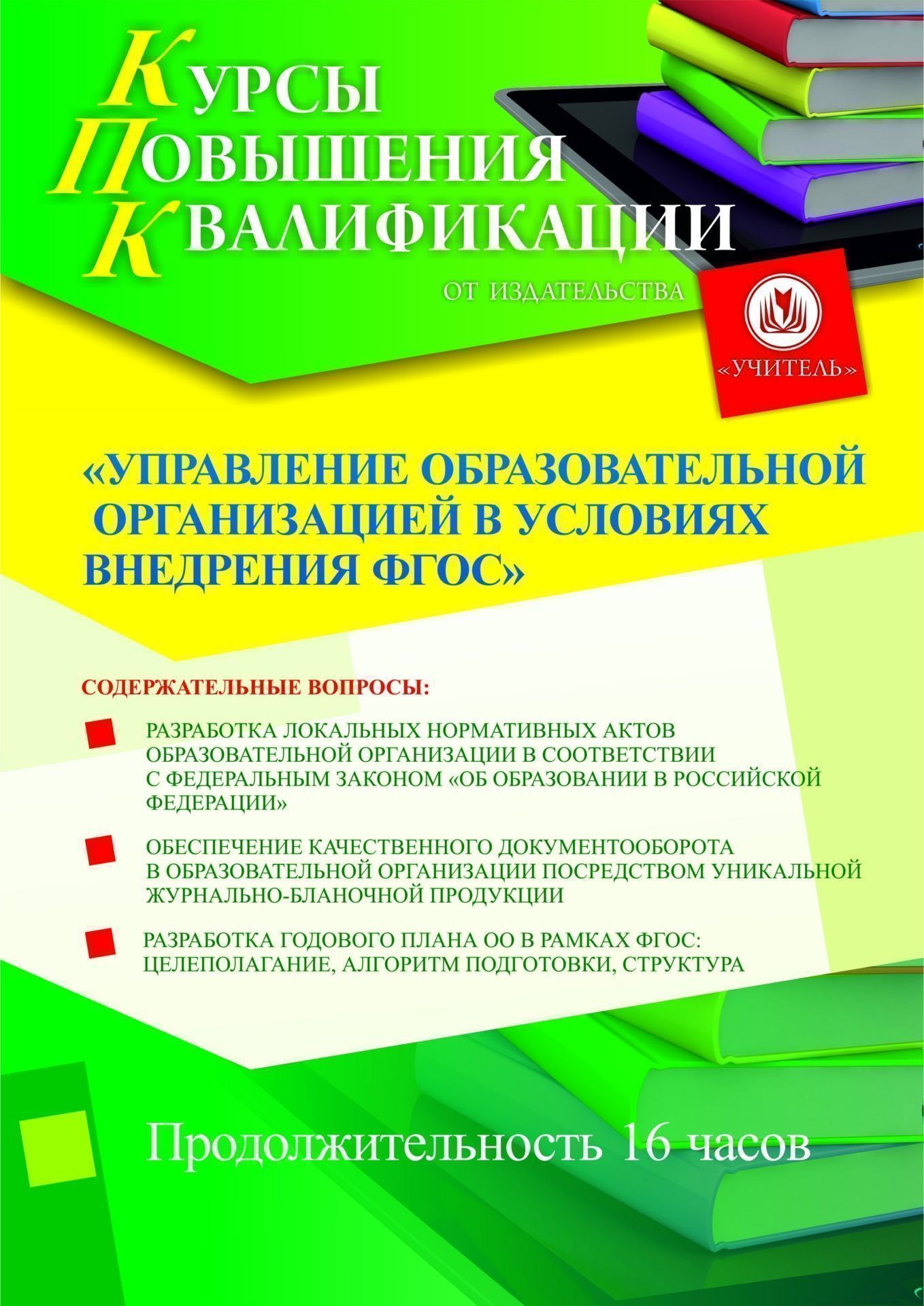 Управление образовательной организацией в условиях внедрения ФГОС (16 ч.)