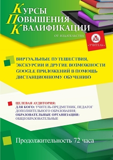 Виртуальные путешествия, экскурсии и другие возможности Google приложений в помощь дистанционному обучению (72 ч.)