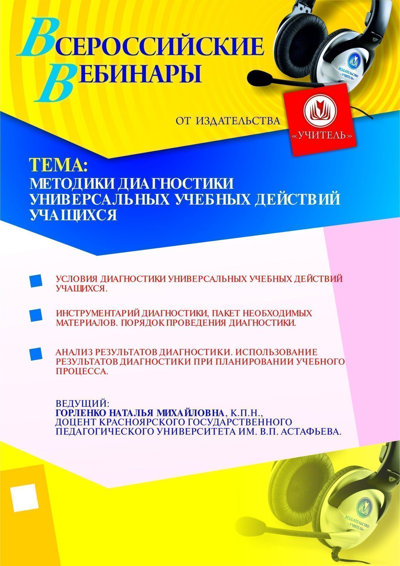 Приглашаем педагогов и специалистов образовательных учреждений, заместителей руководителя по УМР, методистов ОО, руководителей МО, студентов педагогических вузов и ссузов принять участие в offline-вебинаре «Методики диагностики универсальных учебных действий учащихся».