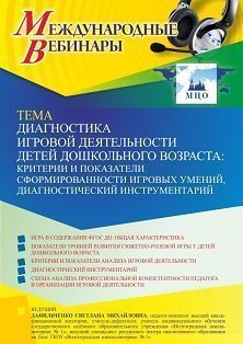Международный вебинар Диагностика игровой деятельности детей дошкольного возраста: критерии и показатели сформированности игровых умений, диагностический инструментарий
