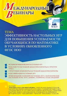 Международный вебинар Эффективность настольных игр для повышения успеваемости обучающихся по математике в условиях обновленного ФГОС НОО