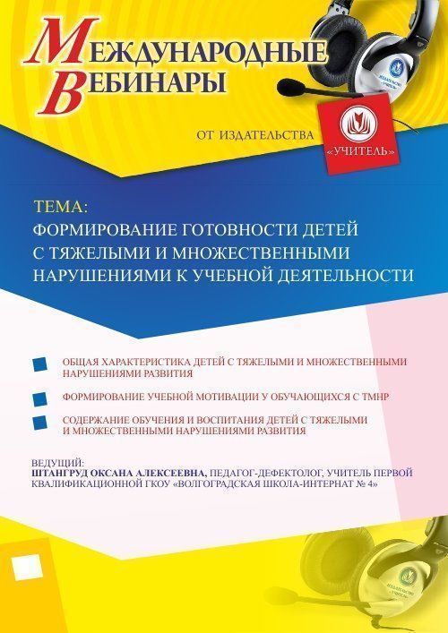 Международный вебинар "Формирование готовности детей с тяжелыми и множественными нарушениями к учебной деятельности"