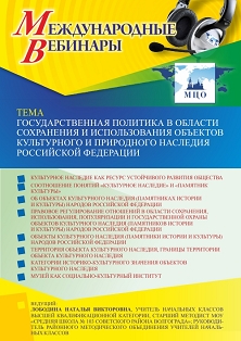 Международный вебинар Государственная политика в области сохранения и использования объектов культурного и природного наследия Российской Федерации