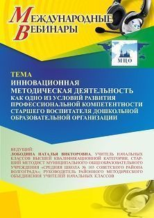 Международный вебинар Инновационная методическая деятельность как одно из условий развития профессиональной компетентности старшего воспитателя дошкольной образовательной организации