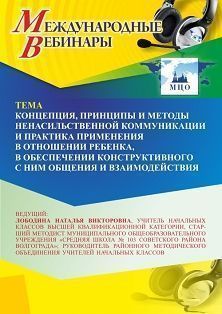 Международный вебинар Концепция, принципы и методы ненасильственной коммуникации и практика применения в отношении ребенка, в обеспечении конструктивного с ним общения и взаимодействия