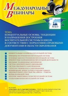 Международный вебинар Концептуальные основы, тенденции и направления построения воспитательной системы в школе в соответствии с нормативно-правовыми документами в области образования
