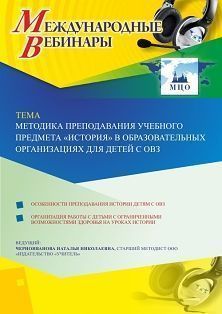 Международный вебинар Методика преподавания учебного предмета История в образовательных организациях для детей с ОВЗ